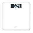 The Beurer glass bathroom scale featuring a modern design stands out with its large standing surface made of super-white safety glass.