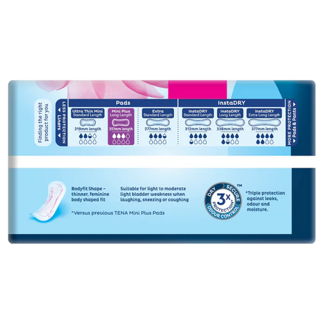 TENA Pads Mini Plus Long Length - 3 Drops - 16 Pack